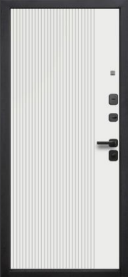 Тепло- и шумоизоляция двери максимальная. Это достигается благодаря конструкции дверного блока. Само полотно выполнено из прочных листов холоднокатанной стали толщиной 1,5 мм. Стальная дверная коробка и наличники – цельногнутый профиль. Противосъёмные штыри защитят дверь от проникновения злоумышленников. Герметичность при закрывании достигается за счет трех контуров уплотнения. В совокупности с наполнителем полотна, обеспечивает хорошую тепло- и шумоизоляцию. Замковая система состоит из двух ригельных замков (сувальдного и цилиндрового) и ночной задвижки. Зона замков укреплена броненакладками.