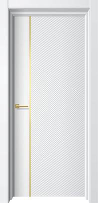 - дверь декорирована золотым вертикальным молдингом.